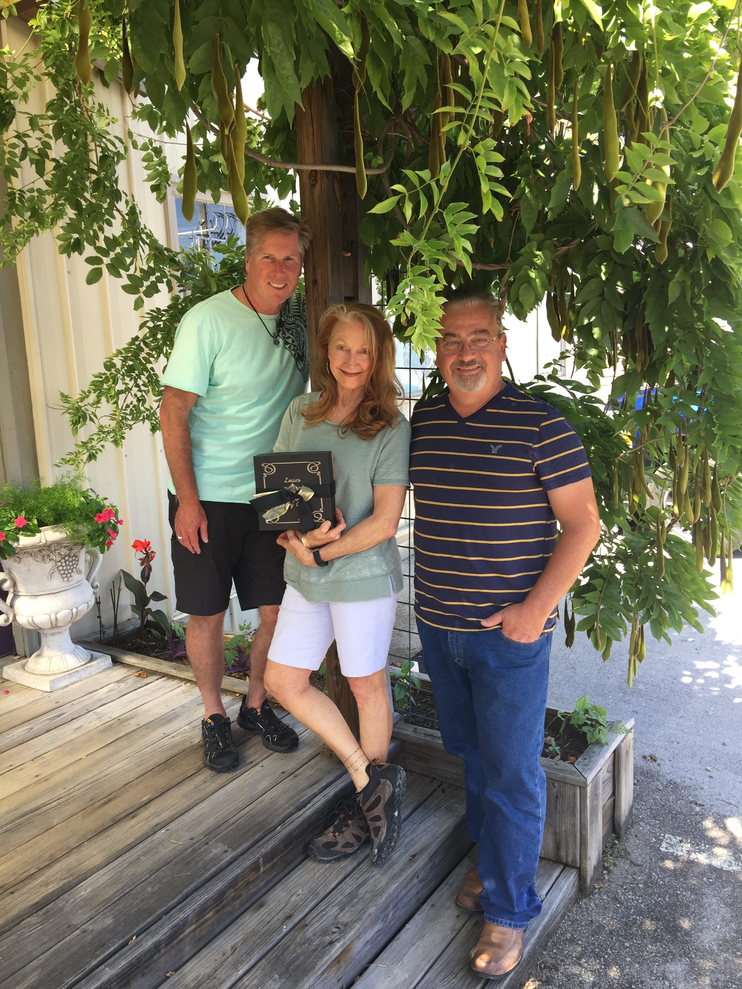 - Randy, Virginia and Jim under the arbor at Mert’s Cakes